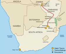 Once the train has passed through the dry reaches of Botswana we arrive at Plumtree in the late afternoon for border formalities with Zimbabwe .We continue in a north-westerly direction passing Bulawayo heading towards Thompson’s Junction and Hwange Game Reserve. Journeys end is the incomparable Victoria Falls on the mighty Zambezi River. Please note that depending upon railways capacity this journey could be routed northwards through Beitbridge and Zimbabwe.