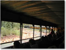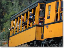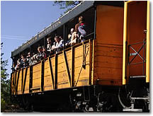 The Outdoor Gondola has long been a favorite of passengers on the Durango & Silverton as it provides unobstructed views of the mountains, river, & canyons. This unique open-sided car features padded bench seats with backrests & every seat faces outward. |