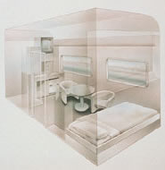 -Single Cabins feature a lounge chair converting to single sleeping berth with shower and toilet facilities located at the end of each carriage