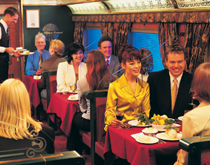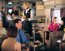 The Gold Lounge is often the centre of activity for any journey. The cosy, club-like setting is an excellent place to socialise or sit back and enjoy the passing parade of Australian landscapes. The Lounge has a licensed bar and is the ideal place to gather for a drink before dinner or for a game of cards and a nightcap with new friends. |