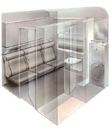 -Cabins feature 3 pin/ 240 volt power point, wardrobe, full length mirror, reading light, foldaway table